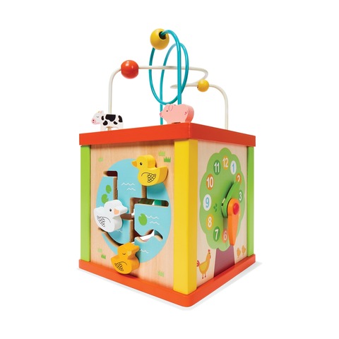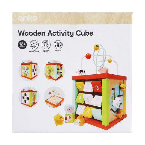 Bright and colourful, this wooden activity cube will enhance your baby's tactile and fine motor skills.