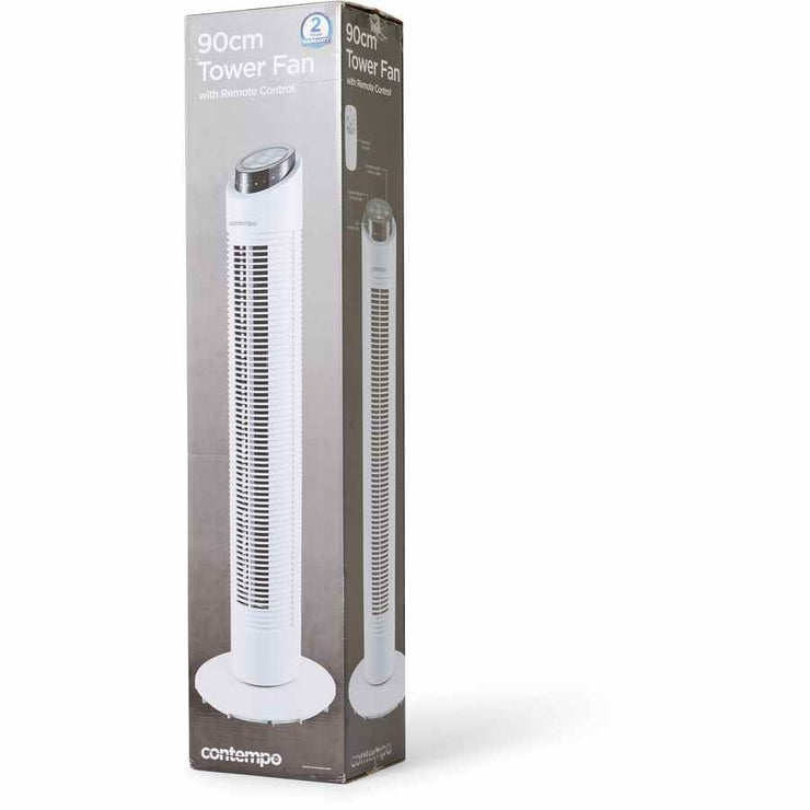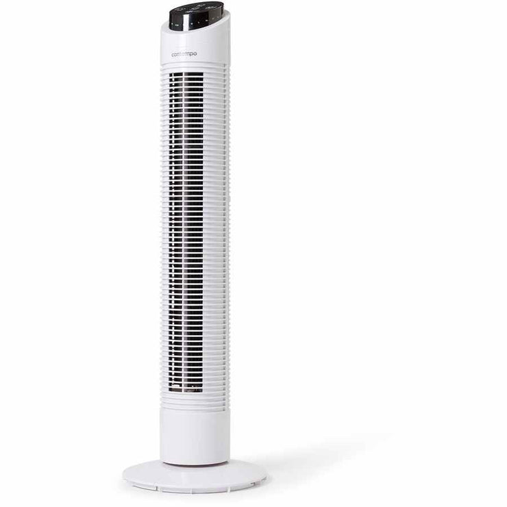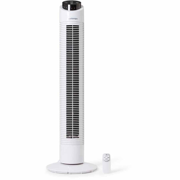 Stay cool in the warmer months with the Contempo Tower Fan. Standing 90cm tall, this fan comes with a remote control, LED indicator lights, 3 speed settings, 3 modes and a timer for the perfect schedule.