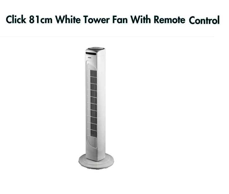 The Click 81cm Tower Fan with Remote Control will keep you cool this Summer. With the convenience of a seven and a half hour timer and the remote control.