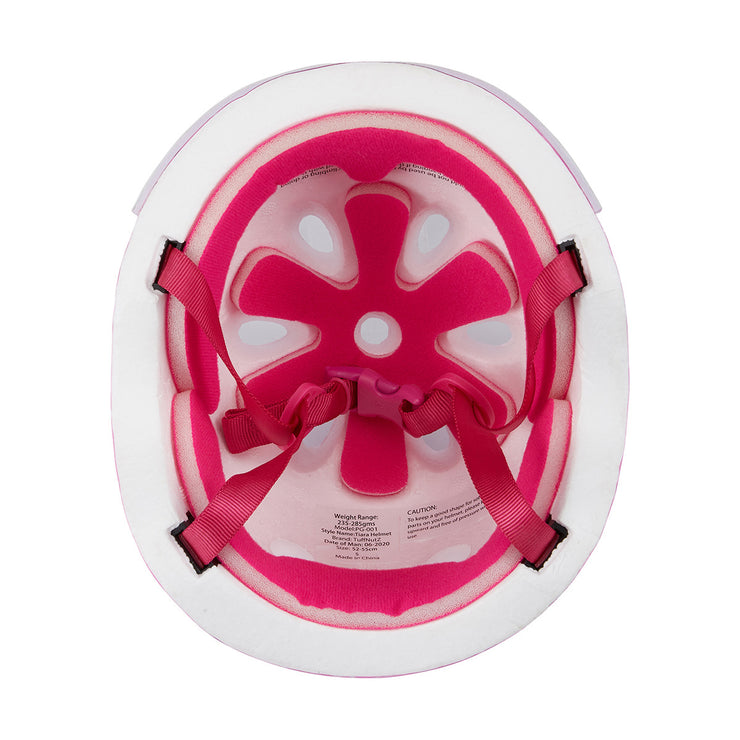 Perfect for little riders, this stylish Tiara helmet features cooling vents and adjustable straps for a secure and comfortable fit.