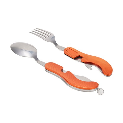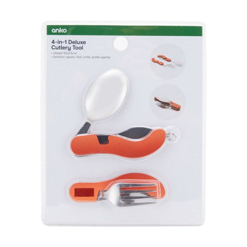 Cut ropes, open bottles, slice veggies and do much more with this 4-in-1 cutlery tool - a must-have accessory for camping and hiking