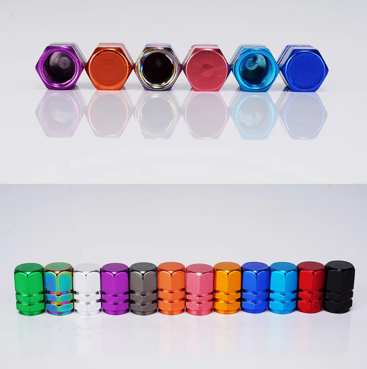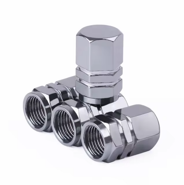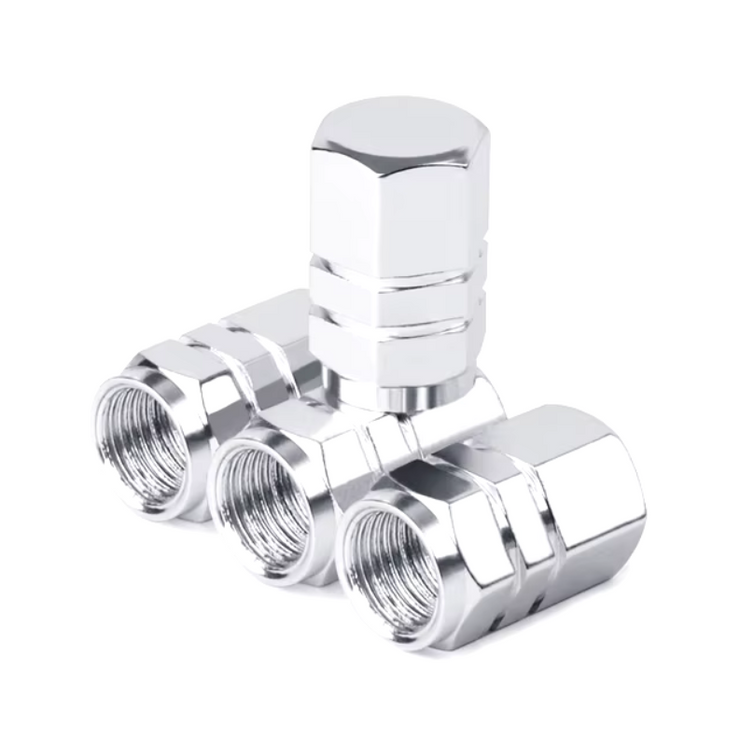 Revamp your ride with our premium chrome aluminum valve caps! Crafted from high-quality, lightweight materials, these caps are designed to withstand the test of time—rust-resistant, durable, and stylish to boot. Not only do they prevent dirt and water from seeping into your valves, but they also reduce the risk of leaks by keeping the valve interiors clean and contamination-free.