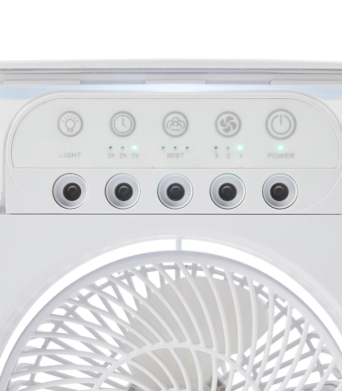 This misting fan comes with LED lights and 3-speed settings to suit your preference - providing an efficient cooling solution for your office or room.