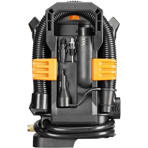 The AEG 18V/12V High Pressure/Volume Inflator can quickly inflate tyres, sports gear, mattresses, and more. Its maximum airflow rate of 510L/min allows it to inflate a standard car tyre from 28psi to 35psi in under a minute or inflate a queen-size mattress in less than 2 minutes