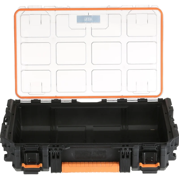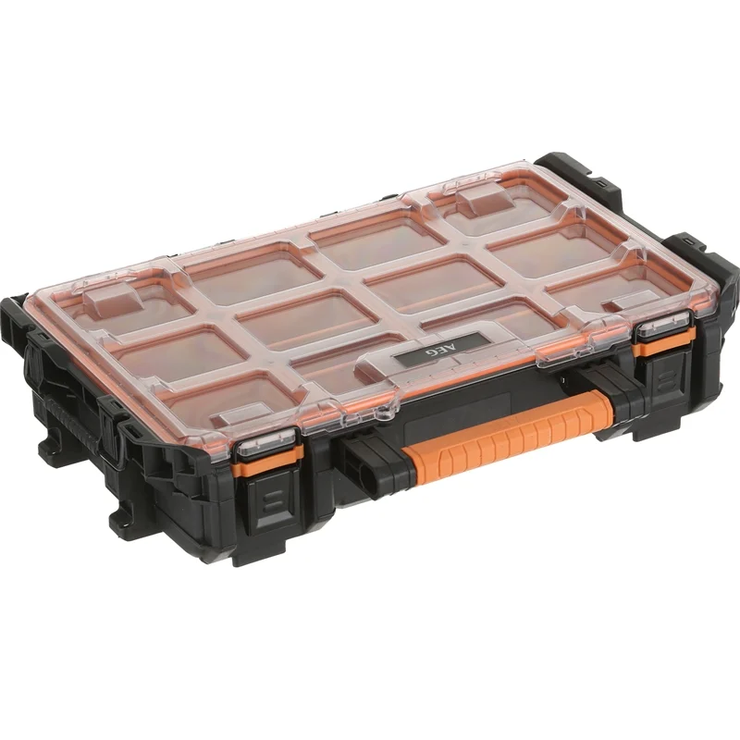 The organiser is made from a high-impact-resistant resign material for extra durability, and it also features an in-built weather seal to protect against dust and water on the worksite.