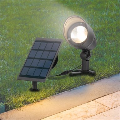 Illuminate your garden at night with the 100 lumen solar-powered LED garden spotlight. You can optimise sun exposure either by attaching the solar panel to the head of the light or by placing it in a remote location, and you can adjust the head of the light to focus it and create a precise lighting effect. You can also adjust the focus of the Len.