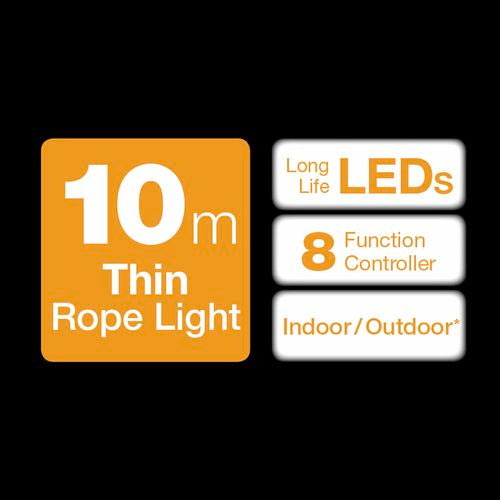 The Arlec 10m Multi-Colour Thin LED Rope Light has 100 super bright micro LED's. It is suitable for indoor or outdoor use. The flexible rope is ideal to decorate stairs or trees. Perfect for all your festive occasions. Battery operated and includes long life alkaline batteries.