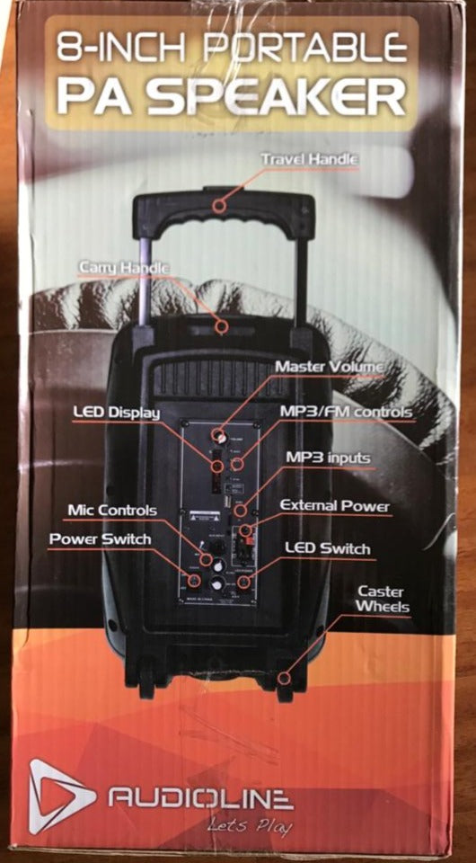 Audioline 8-Inch Portable Speaker FM Radio AUX Bluetooth Rechargeable