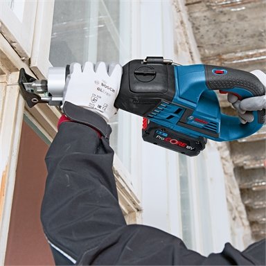 The Bosch GSA 18V cordless sabre saw has an innovative design which allows the user to work in various positions and over a long period of time. The 18V cordless saw has high cutting performance, with low vibration for health and safety. With a brushless motor for the longer lifetime and increased efficiency, the sabre saw has a variable speed trigger for an accurate cut to reach in all kind of working positions