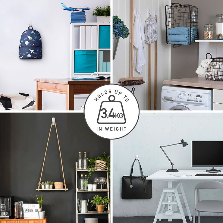 Available is large variety designs, the 3M Command™ Hooks to match your unique style, decor and organisational needs. Comes in a variety of sizes, they hold a surprising amount of weight - This Hook can holds up to 3.4kg!