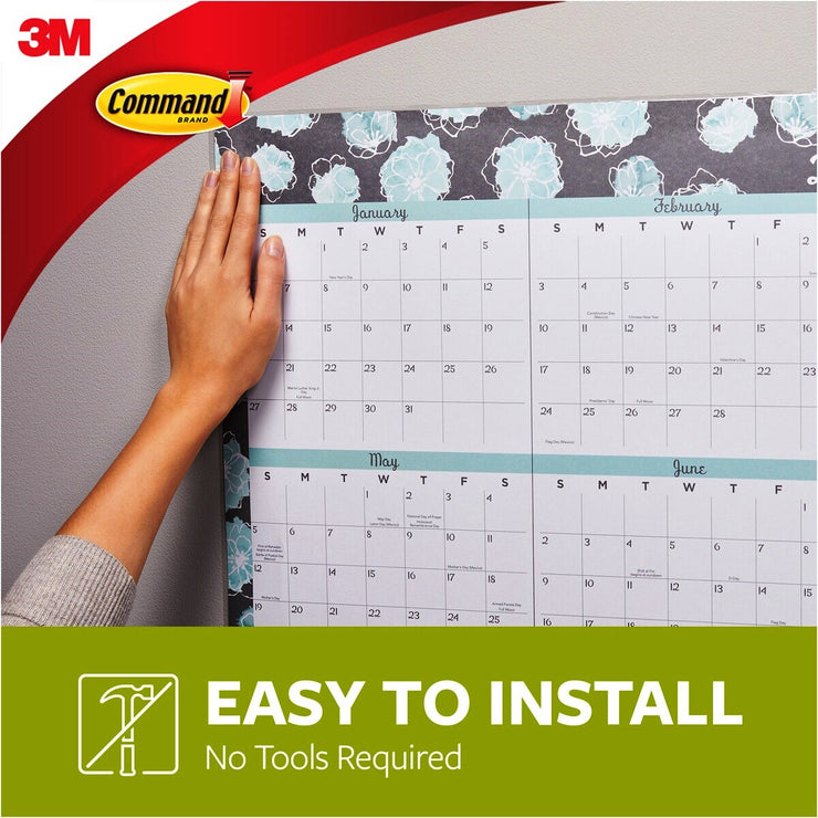 Perfect for hanging schedules, posters, calendars and pictures without frames, or as an alternative to double-sided tape Using the revolutionary Command™ Adhesive, they hold strongly on a variety of surfaces, including painted walls, wood, tile and more without using any tools. Without leaving holes, marks, sticky residue or stains it removes cleanly and easily.