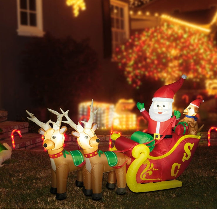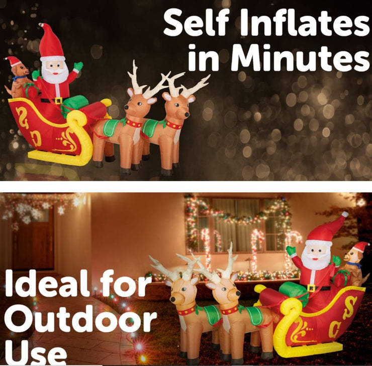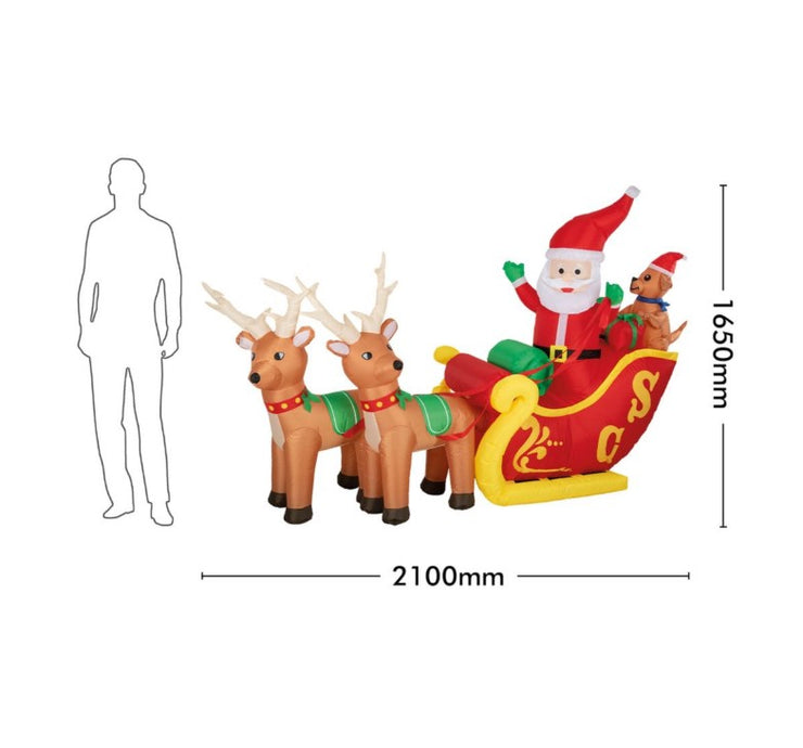 Introducing the majestic and enchanting Festive Inflatable 2.1M Santa, Reindeer & Sleigh, a magical centerpiece for your holiday decorations. This captivating inflatable display will transport you to a winter wonderland, where Santa and his reindeer embark on their journey to spread holiday joy.