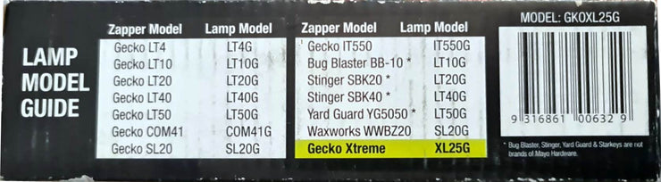 - Model Name: Gecko 25W Xterme Zapper replacement UV lamp