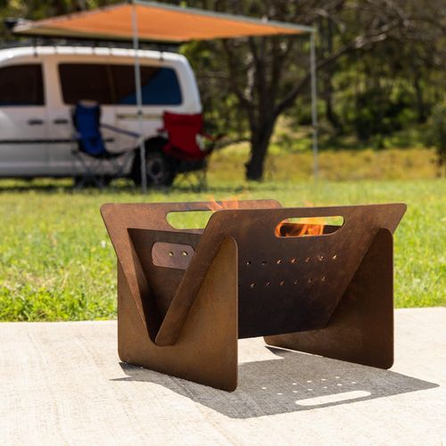 The Camper fire pit is easy to assemble. Use it in your yard, or take it with you camping.