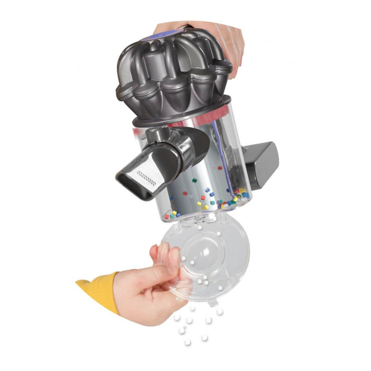 It makes pretend play so much more realistic. Featuring working suction, small bits are picked up and can be emptied by releasing the catch on the debris compartment. The simulated cyclone action can been seen by the coloured balls spinning around in the cylinder so it looks like the parents Dyson.