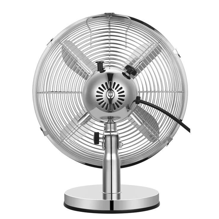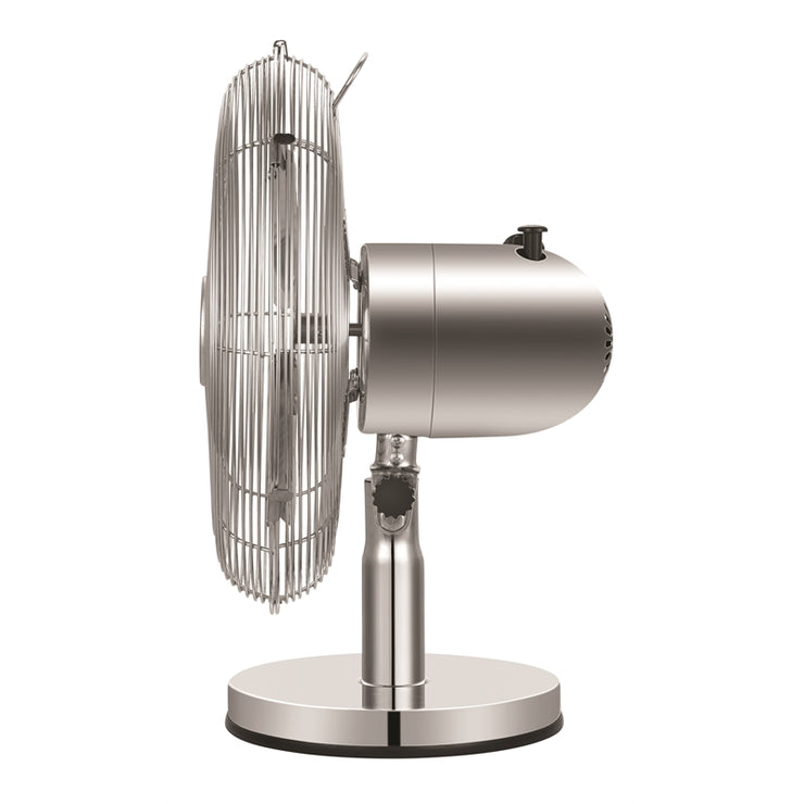The Euromatic 30cm Chrome Metal Desk Fan will keep you cool this summer. Featuring 3 speed settings, a tilt adjustable head and fixed or oscillating function.