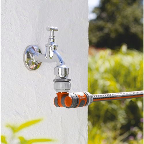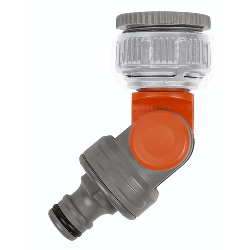 • GARDENA angled swivel tap connector suits 1" and 3/4" taps and 13mm hose connectors
