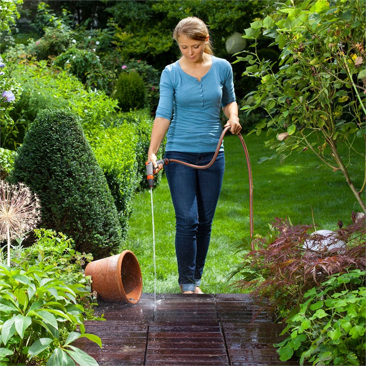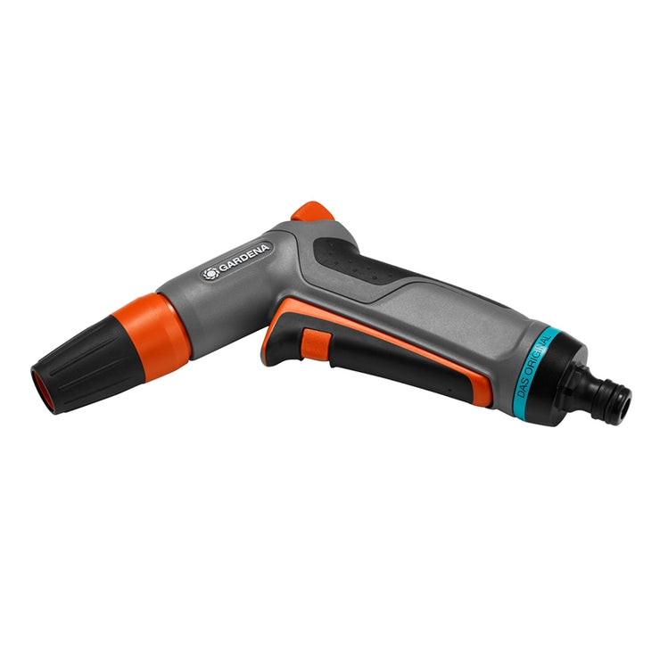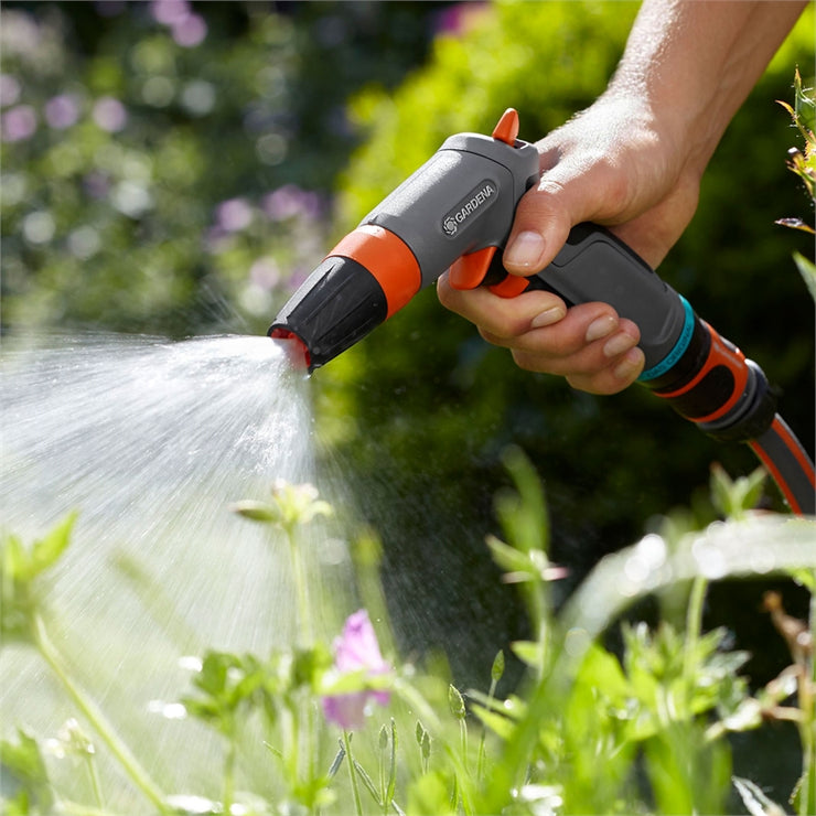 The GARDENA Comfort Trigger Gun Nozzle covers both your irrigation and heavy cleaning needs in one spray nozzle. The fine-mist spray is gentle enough to water tender seedlings and can also be used on garden beds, window boxes and potted plants. The hose nozzle gun hard-jet spray tackles all heavy cleaning tasks with ease and makes this spray gun a versatile choice for watering and cleaning.