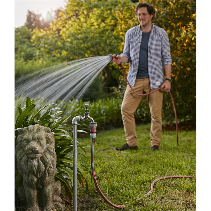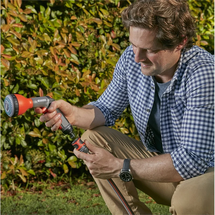 The GARDENA 13mm Multi Sprayer Complete Set contains all of the hose fittings you need to start watering with your hose easily and quickly. The Original GARDENA System 13mm hose fittings with power grip ensure everything connects from tap to accessory and stays watertight. The GARDENA 13mm Classic Multi Sprayer is the ideal hose nozzle for watering lawns and garden beds (soft spray), potted plants (bubble jet) and general cleaning (hard jet).