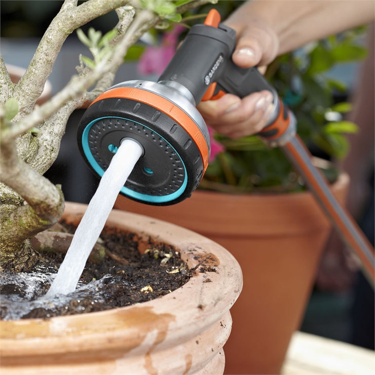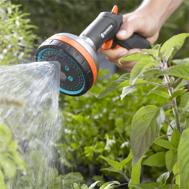 The GARDENA Premium Multi Sprayer covers all irrigation and cleaning needs with its five spray patterns. The fine-mist spray is gentle enough to water tender seedlings; the gentle soft-spray and bubble-jet are perfect for watering garden beds and potted plants, and the flat-jet and hard-jet can be used to efficiently complete cleaning tasks. The garden sprayer has an integrated filter which helps prevent the collection of dirt while being easily removed for cleaning. The spray nozzle also comes with integrated frost protection.