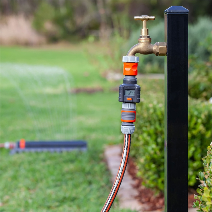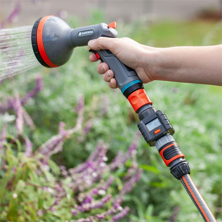 It can effortlessly be connected to your tap, sprayer/nozzle, sprinkler or pump and the flow counter records your water consumption by day, season or session. It can also be used to monitor your current water flow (in liters per minute). Compatible with Original GARDENA system devices.