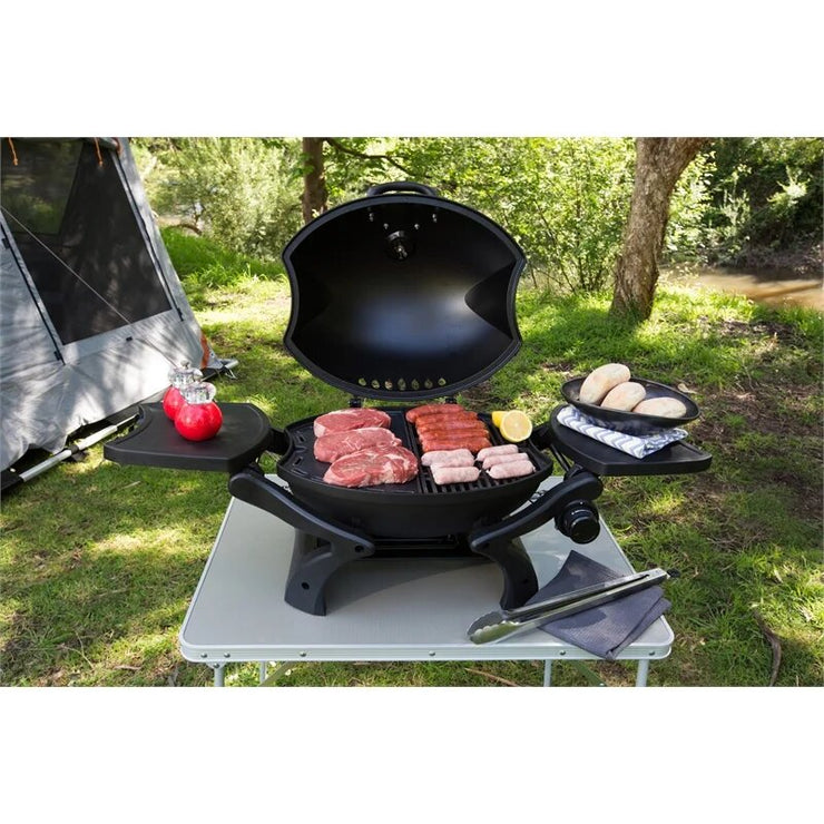 The Gasmate Black Single Burner Odyssey Portable BBQ is a great compact BBQ with rust resistant lid and bowl, high heat output, large cooking area and can be taken anywhere.