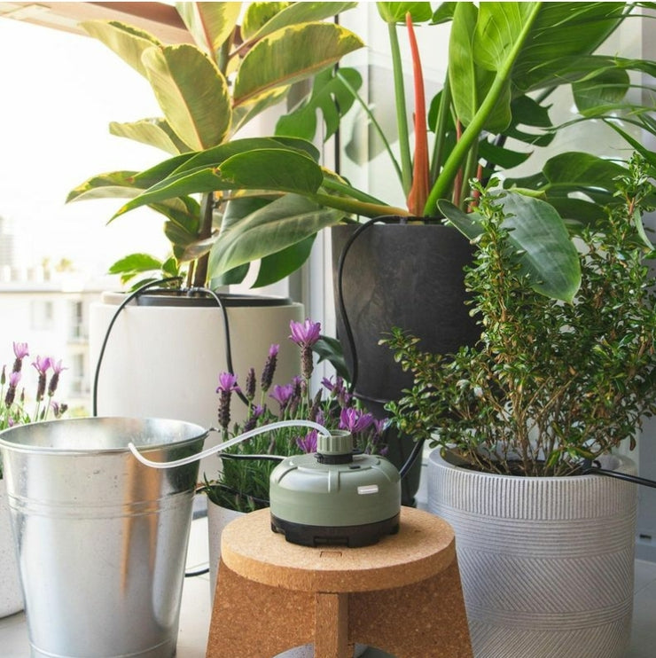 Keep your plants happy while on holiday with our indoor Self-Watering Drip Irrigation System. This kit comes complete with all the drippers and tubing required to water up to 10 plants. Re-use plastic bottles by screwing directly onto the timer, or use the included cable and filter to draw water from a bucket. This Self-Watering System can last up to 28 days on the rechargeable battery and has run times from 5 seconds up to 60 minutes.