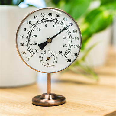 The Holman Brass Thermometer and Hygrometer is a stylish thermometer with a large display making it easy to read.