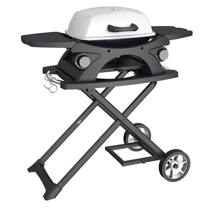 • Folding design, BBQ tool hooks, and BBQ mounting points