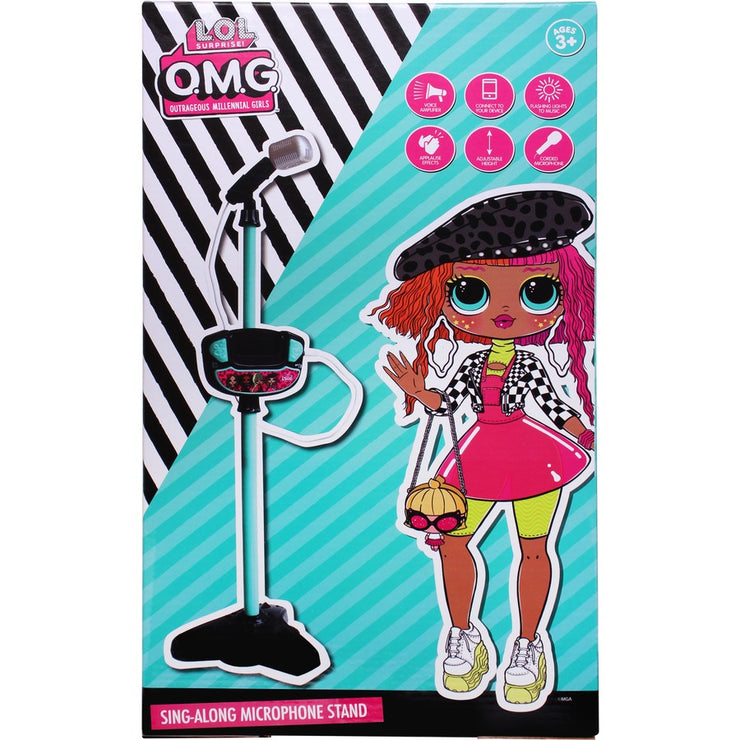 Grab the Spotlight and Rock the Mic with this LOL OMG Moulded Microphone stand! Sing along to your favourite songs and add effects with the device cradle lighting up to the music. Don't forget to hit that button for extra applause on your best performances!