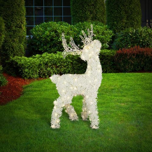 Celebrate the festive season in style with Lytworx Hedge Reindeer, aglow with an enchanting halo of pre-lit LED light and designed with the look and feel of an elegantly sculpted white grass hedge. This 1.2-metre-tall decoration is suitable for both indoor and outdoor display and makes for the perfect festive garden scenery, holiday décor, and home party decoration.