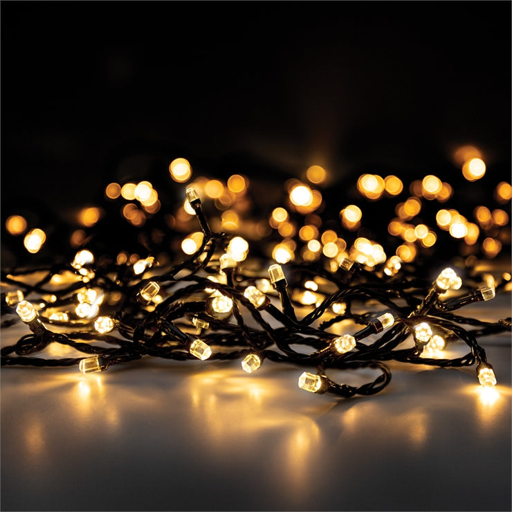 The Lytworx 19.9m Warm White Connectable Facet Bud LED Fairy Lights creates special feel this summer with these reflective facet bud fairy lights. The long lit length of 19.9m, is ideal for decorating hedges, pergolas, and gardens. The larger LED cover gives off a lovely glow that will enhance your outside area.