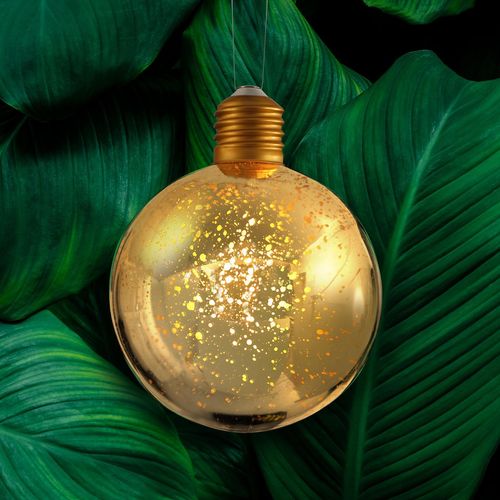 This lightweight hanging bulb is battery-operated and makes decorating both indoor and outdoor spaces a breeze. This bulb features a festive gold-look design and spans a 15cm diameter.