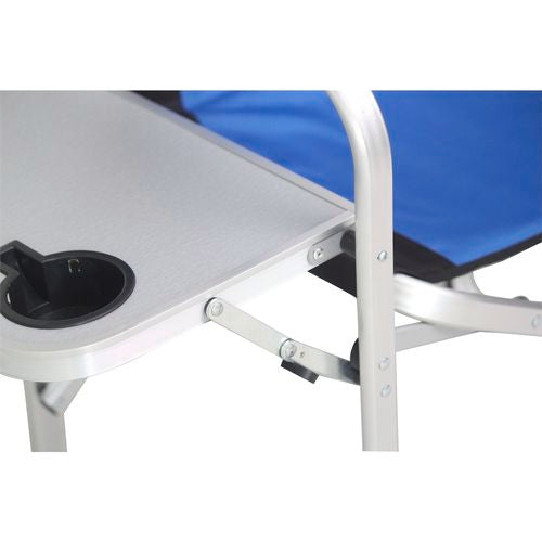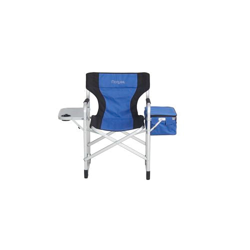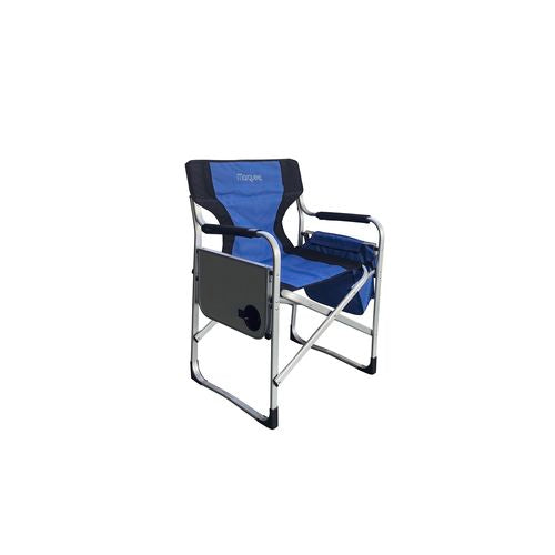 The Marquee Director Chair With Cool Bag is ideal for outdoor adventures or entertaining at home. It is portable and lightweight, making it a great temporary seating solution on any occasion. Made from durable powder coated aluminium tubular frame to support up to 110kg. The Director Chair features a convenient side table with a drink holder and cool bag, whilst the padded polyester seat and back rest provide maximum comfort. When not in use the chair folds flat for easy storage in a cupboard or your car boot.