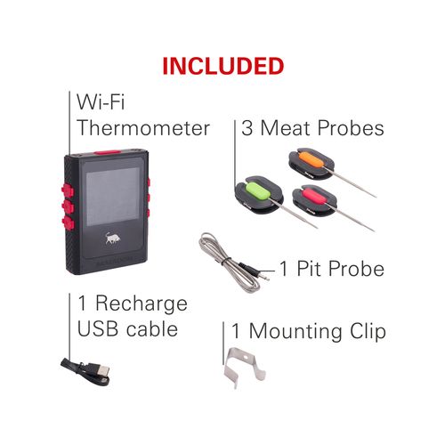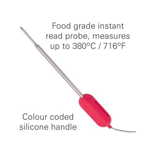 - Includes 3 colour coded, instant read temperature probes which measure between 0-380°C as well as high temperature pit probe.