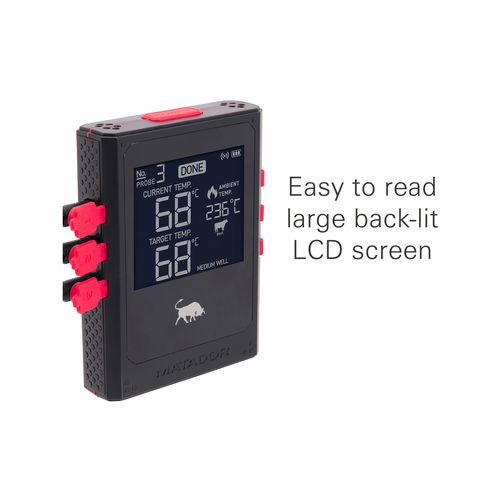 The Matador Wi-Fi Wireless Thermometer allows you to monitor your cooking remotely using compatible smartphone and a 2.4Ghz Wi-Fi connection, so you can receive notifications and alerts almost anywhere.