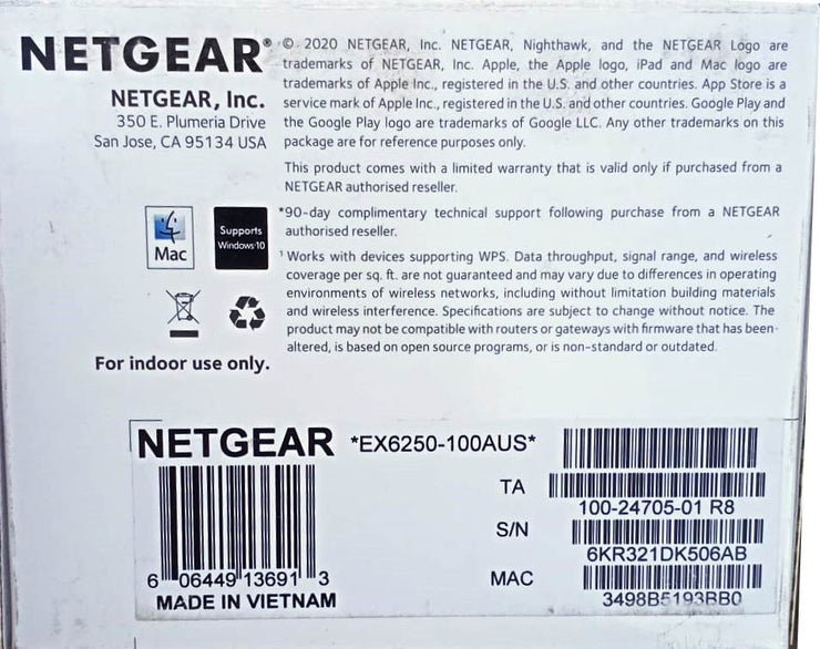 - Model Name: NETGEAR AC1750 WiFi Mesh Extender (EX6250)