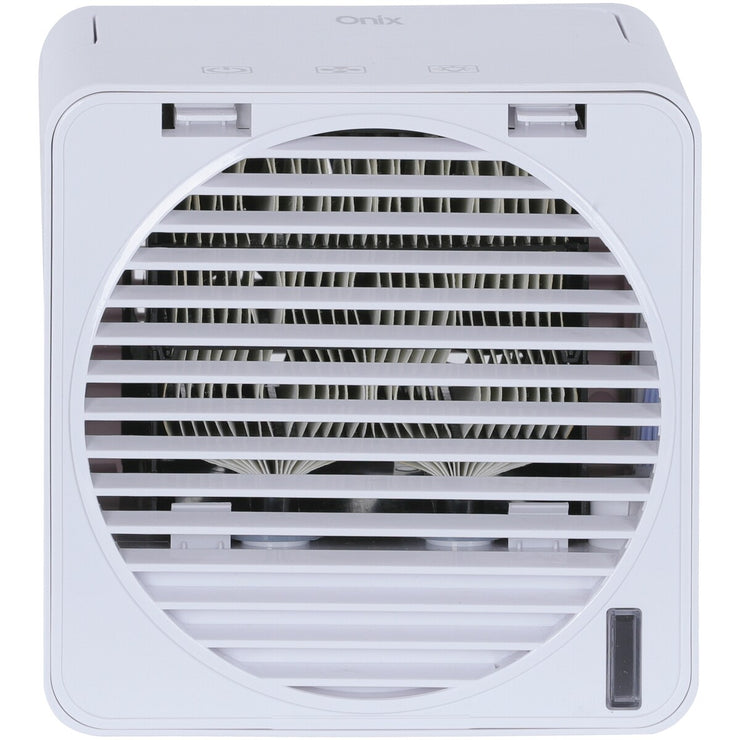 The Onix Mini Air Cooler & Purifier is a two-in-one humidifying and air purifier. Its small size and sleek white colour makes it a great way to stay cool at home in summer.