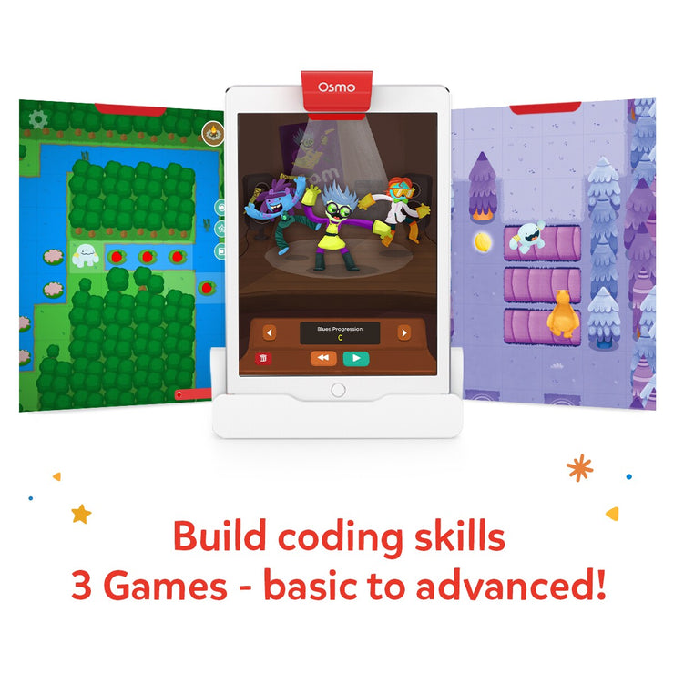 Learn to become masters of innovation and technology with Osmo Coding Starter Kit: 3 fun-filled games in the kit teach your child to control onscreen characters using tangible coding blocks while building computational thinking skills, pattern recognition, visual acuity, and more. Explore coding at an age-appropriate pace, where early learners can start with games focused on problem-solving, and then advance to more complex concepts like sequencing and looping.