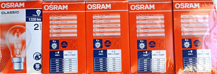 This Osram halogen classic A shape globe provides 2000 hours of illumination, emitting 1320 lumens of warm white light. It provides instant light and is dimmable.