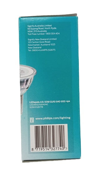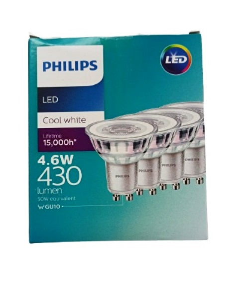 - Model Name: Philips 4 Pack 4.6w GU10 LED Globe