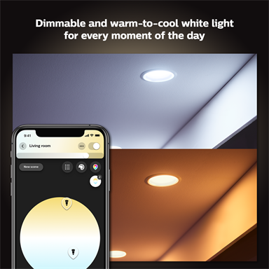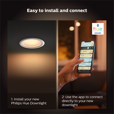 New to the Philips Hue Smart Lighting range, the Garnea is an attractive 90mm cutout Downlight that delivers a full dynamic range of over 50 000 shades of white from 2700K through to 6500K. Featuring am integrated driver with flex and plug for installation (requires a professional install by qualified electrician), the Garnea can be controlled by a Hue switch, via Bluetooth app on any mobile device or - for full flexibility of control - can be configured to work with the Philips Hue Bridge giving the user full interaction including routine settings and voice control for up to 50 Hue smart devices.