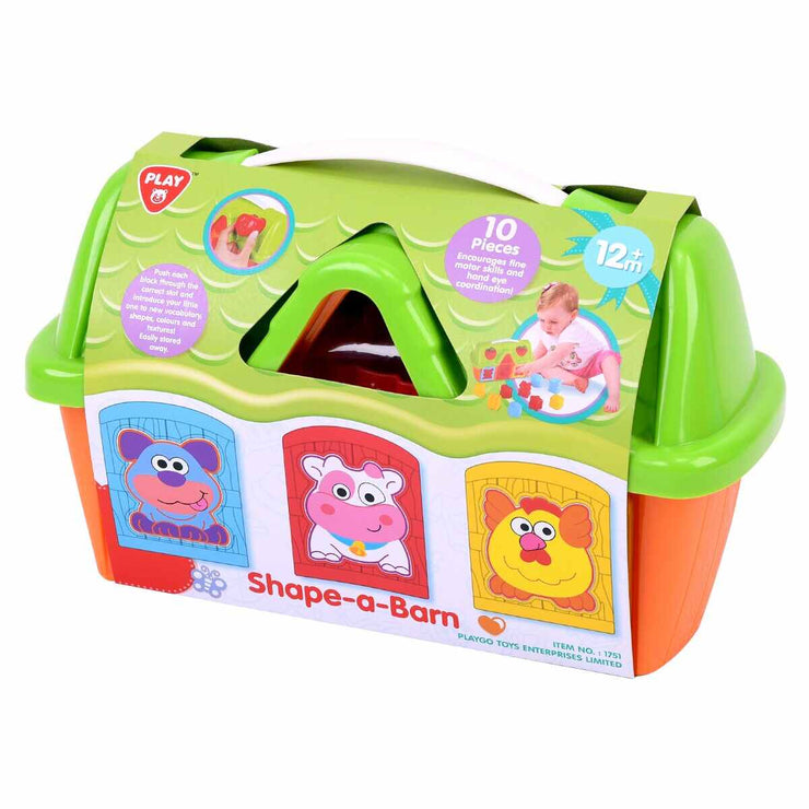 Match each animal block to the correct opening and slide the 9 different pieces into the barn.