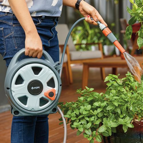 Pope is the household name when it comes to watering products with a great range of offers to suit all watering applications and garden sizes. The Pope Small Garden Hose Reel is an ideal solution for small gardens, be it on a balcony or terrace. It comes ready to use with 10m x 8mm hose, adjustable nozzle and 1.5m tap-to-reel hose. There is no hassle with assembly.
