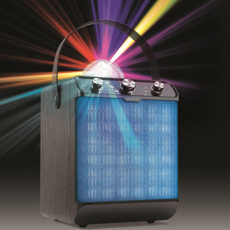 The Stadium Musicbox is a versatile feature packed party machine. Your party is not complete without party lights and great tunes pumping. Karaoke all night long with the microphone input.