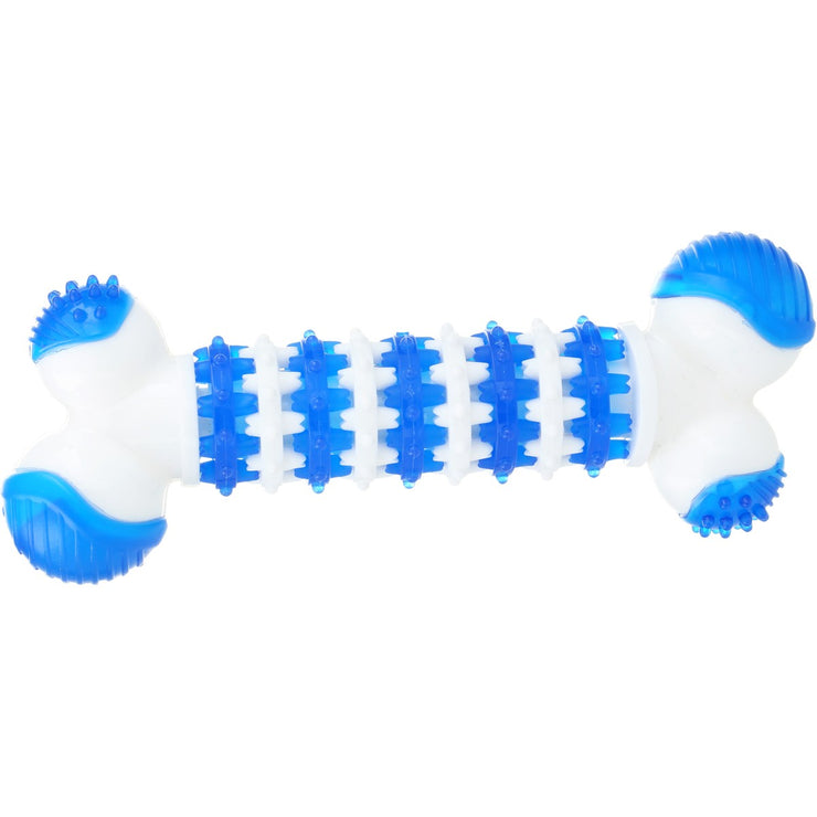 Treat your furry friend to the Durable Bone Chew from Tails. With its grooved interlocking central section great for getting their teeth around, various grips and groves at the ends of the bone and a rotating central section, this toy is perfect for your dog to really get their teeth into to work on their jaw muscles.