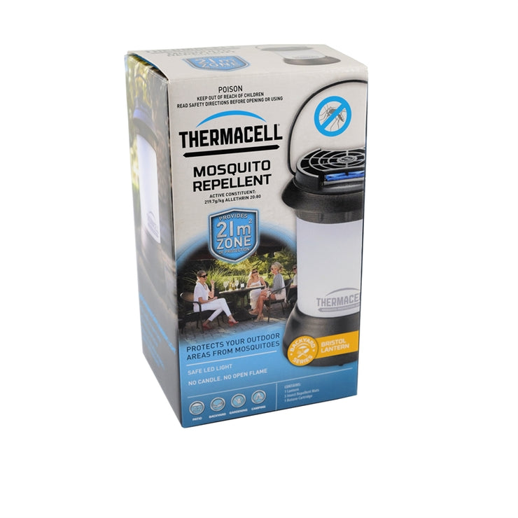 - Includes Thermacell Bristol Lantern, 3 x 4 hour repeller mats, 1 x 12 hour butane cartridge, instruction manual