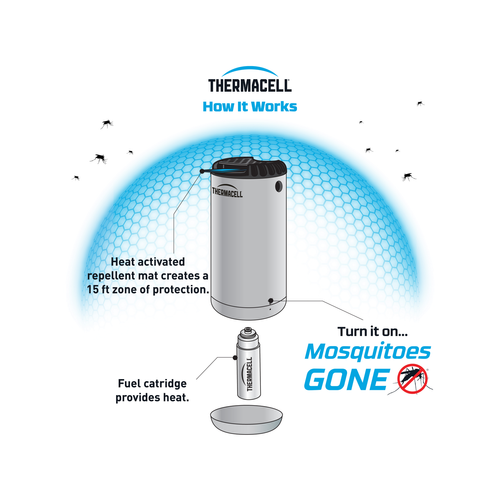 Thermacell Mini Halo. Simply click it on, and the Mini Halo Mosquito Repeller provides invisible, continuous protection from mosquitoes. Colourful and contemporary in design, Mini Halo is incredibly effective and easy to operate. The design is sleek, and color options include Graphite and Navy.