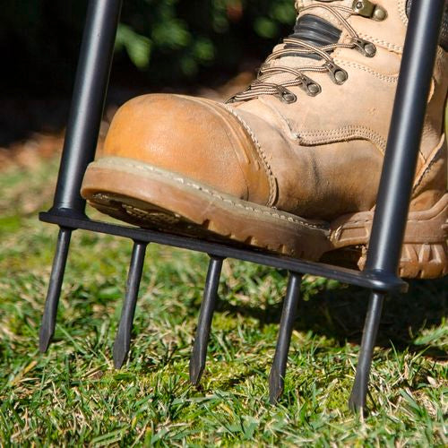 The Trojan Spiked Lawn Aerator is ideal for aerating the lawn. Aeration is vital to any lawn as it allows air, water and nutrients to reach deep into the soil resulting in deeper roots and a healthier lawn. This product features a strong carbon steel frame with a large foot tread which is perfect for harder soils.