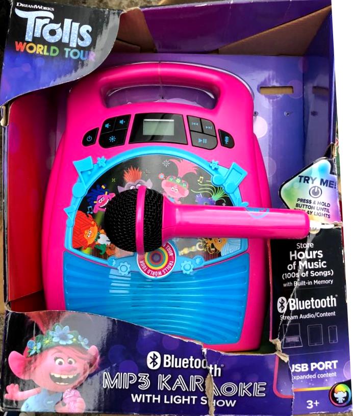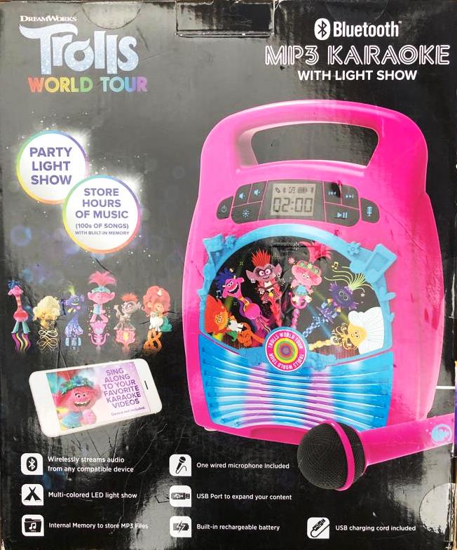 Host a singing party for your little one at home with this Kid designs Trolls Bluetooth Karaoke machine.